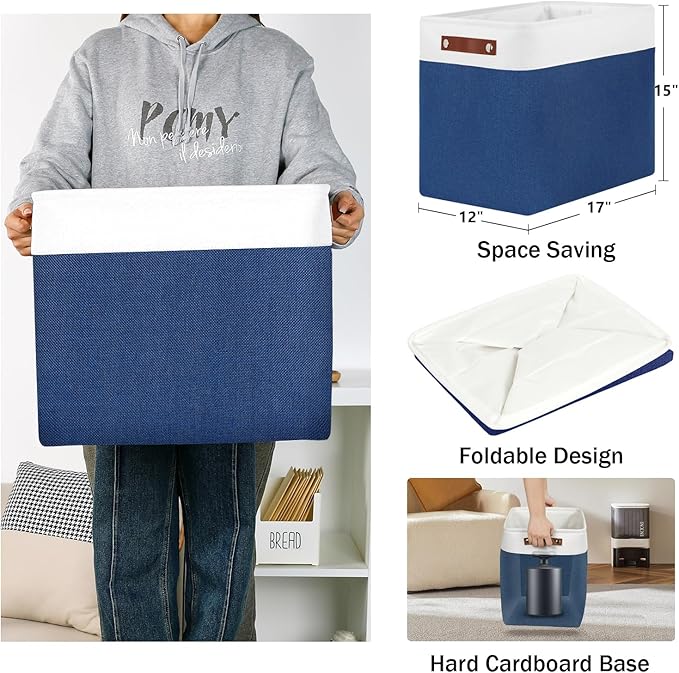 • 【Unique Design & Modern & Decorative】Set of 2 large storage baskets, dimensions(each): 17(L) x 12(W) x 15(H) inches. Collapsible storage baskets bring you organizing convenience and a sweet home. Great for socks, underwear, books, magazines, toys, baby clothes, pet products, wipes, towels, decorations, office supplies, DVDs, and gifts. The fabric baskets with neutral colors can match a lot of home styles - keeping your home nice and tidy.
