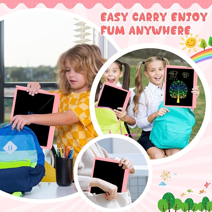 • The shell of the doodle tablet using premium ABS material, also adds a rounded corner design with excellent shock and drop resistance,The drawing tablet weighs only 200 grams , hardly feel the weight of the toys for 5 year old boys,easy to be placed in school bags, handbags or any other small bags. Play with this kids drawing pad anywhere.