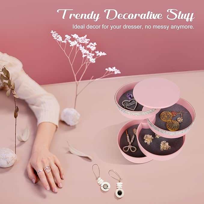 • ♥【Rotating Jewelry Organizer】- Simple and modern style, rotate into any look you like, excellent dressing table decor; it's a compact cylinder when closed, and isolate dust to better maintain the luster of jewelry.