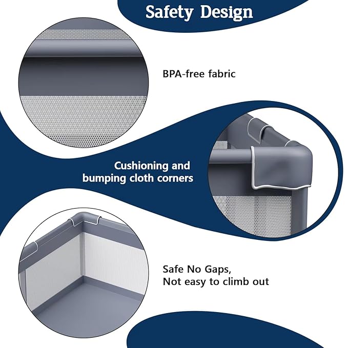 • 【NOTICE】PLAYPEN ONLY! NO MAT INCLUDED! Notice the color will be sincerely a littler darker or lighter due to different monitor display. Size may differ 0.5-1.0 inch due to hand measure.