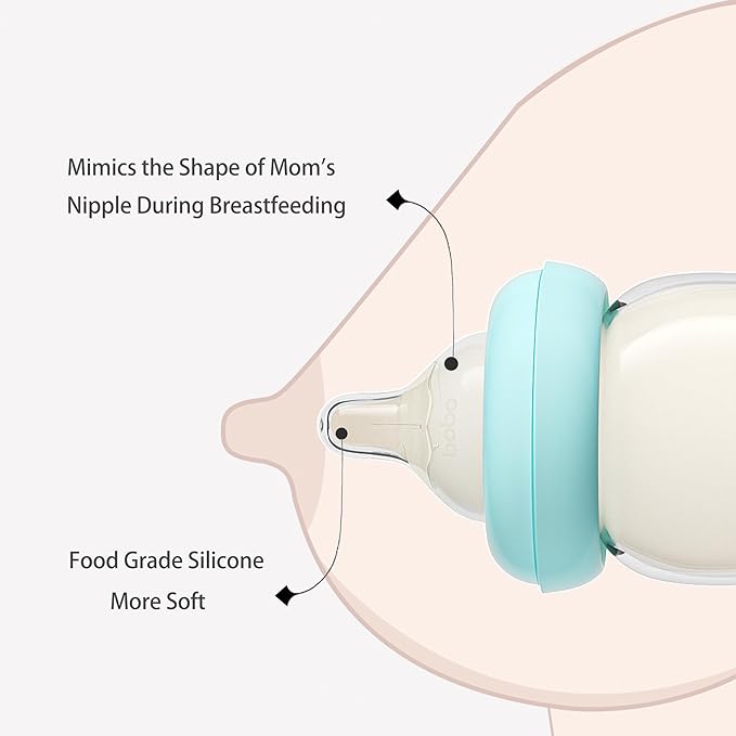 • The bottom of the nipple has intelligent pressure regulating valve, balance internal and external pressure, milk and air separation, to avoid the baby breathing too much air caused by colic flatulence.