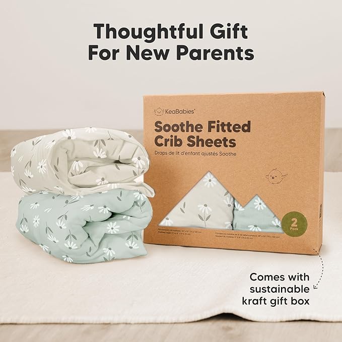 • 2-Pack Baby Crib Sheets - KeaBabies Soothe Fitted Crib Sheets for boys and girls; fit standard crib mattresses (52"x28" with height 3" to 8") perfectly, offering your baby a safe and restful sleep.