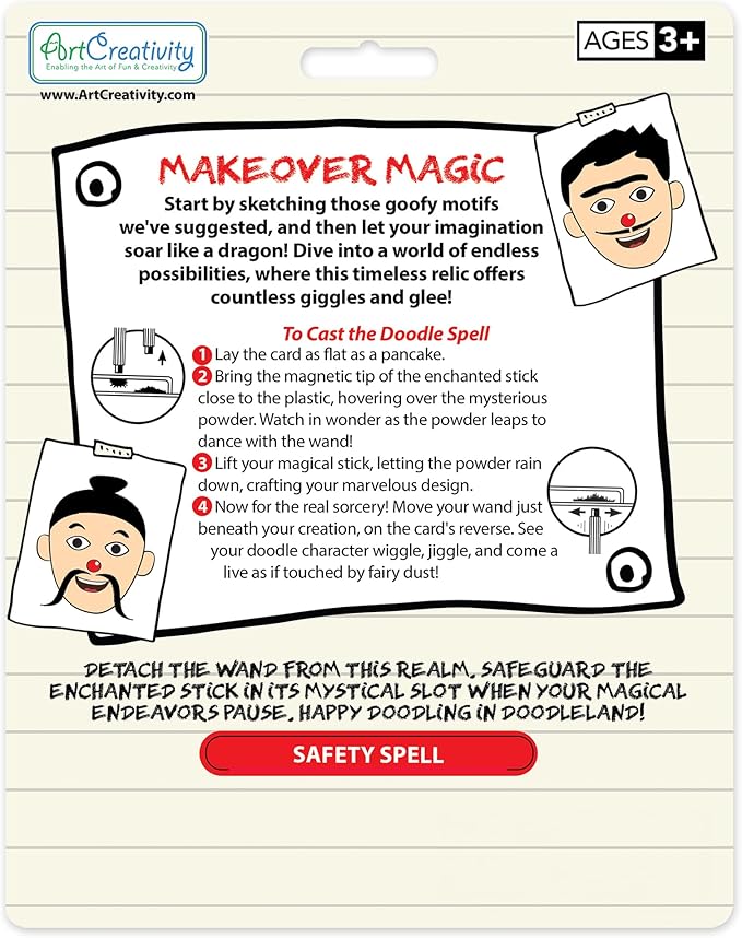 • HOW TO USE: It’s simple. Use the attached wand to move the magnetic iron shavings onto different parts of the drawing’s head and face. Create sideburns, mustache, a goatee, or afro, and feel the boredom lift away.