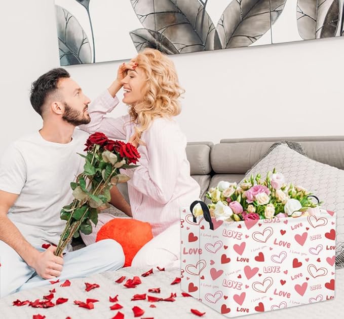 • MATERIAL:The valentines day basket basket is made of durable canvas &The inner lining is made of waterproof fabric; sturdy metal rod frame around the top keep the basket shape.