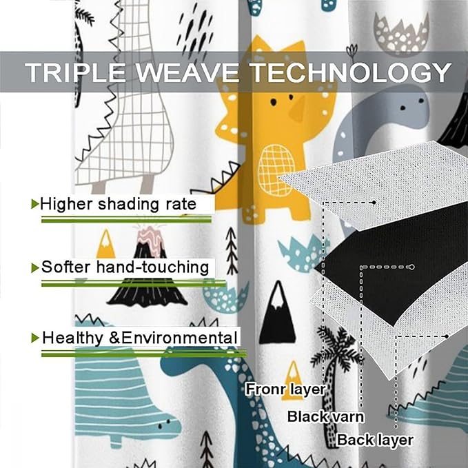 Kids Dinosaur Curtains for Boy Girl Bedroom Decor Cartoon Dino Colorful Cute Funny Wildlife Animal Printed Blackout Rod Pocket Window Drapes for Baby Nursery Playroom Living Room W27.5xL63in 2 Panels