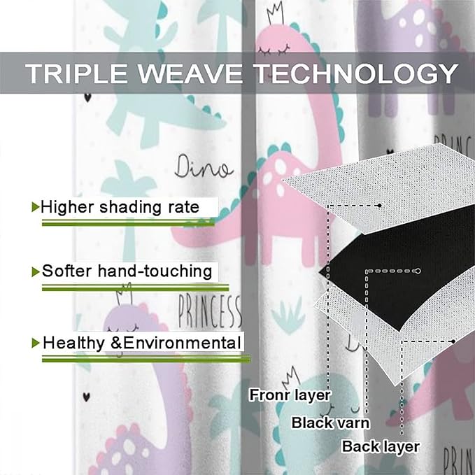 Kids Dinosaur Curtains for Boys Girls Bedroom Decor Cartoon Dino Colorful Cute Funny Animal Wildlife Printed Blackout Rod Pocket Window Drapes for Baby Nursery Playroom W21xL63in 2 Panels