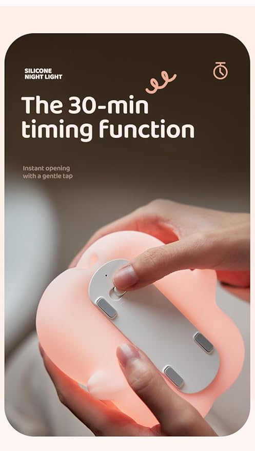 • [Humanized Mode Adjustment]Pig sleep night light has 3 levels of brightness adjustment, which can meet your different needs. Low light mode is suitable for breastfeeding, sleeping, and getting up at night, and high light mode is suitable for diaper changing and lighting. There's also a timer mode where you can preset the auto-off time to 30 minutes.