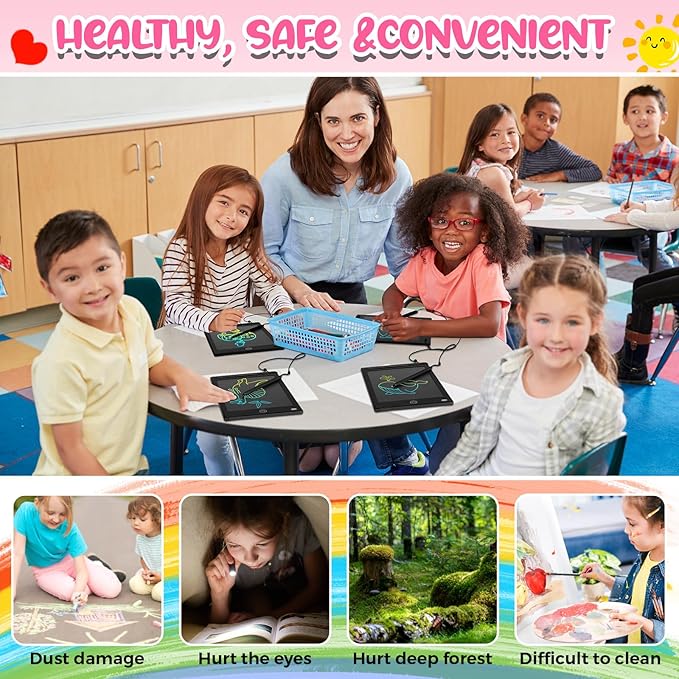 • Eye Protection Screen: 8.5 inch children's LCD writing board with rounded corner design, feature with LCD screen, no radiation, no glare, nice vision experience suitable for children's long term safe and comfortable use