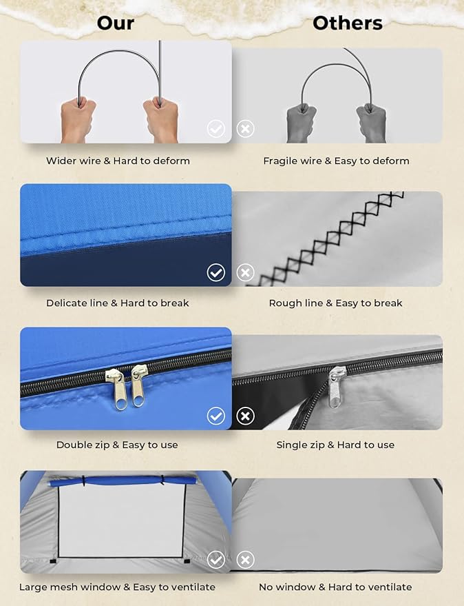 • Great ventilation: Glymnis Pop Up Beach Tent with a big meshes window for ventilation, keep cool and enjoy the outside scenery at the same time. Wonderful for for all-day shade at the park,beach,sporting event
