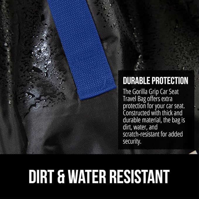 • DURABLE PROTECTION FOR YOUR CAR SEAT: a must for traveling, the Gorilla Grip Car Seat Travel Bag is designed to help protect your car seat while you travel; bag is water, tear and dirt resistant; features drawstring closure that tightly closes around the car seat, helping to protect from dirt, grime and moisture; bag is made of lightweight, yet durable material that can be machine washed​