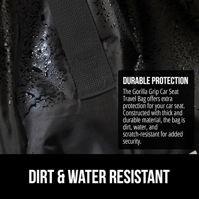 • DURABLE PROTECTION FOR YOUR CAR SEAT: a must for traveling, the Gorilla Grip Car Seat Travel Bag is designed to help protect your car seat while you travel; bag is water, tear and dirt resistant; features drawstring closure that tightly closes around the car seat, helping to protect from dirt, grime and moisture; bag is made of lightweight, yet durable material that can be machine washed​