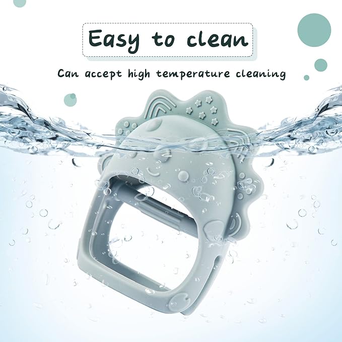 • MADE OF FOOD-GRADE-SILICONE: The baby teething toy are made of food grade silicone, which is non-toxic, BPA free, lead free and phthalate free. Apart from chemical safety, the physical safety is also guaranteed with the one-piece design preventing from any choking hazard. Plus, this product is soft and durable. Wise parents will always create a safe environment for their baby to grow up carefreelly.
