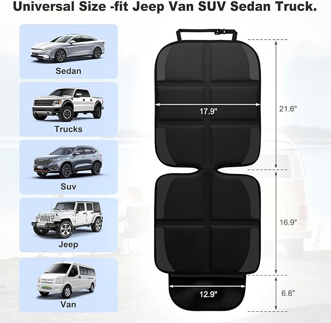 • Car seat protector covers for baby carseat made of waterproof durable 600D polyester with thick padding. Baby car seat cover can protects the back seat of the car from wear and tear of the child seat, make us comfortable while traveling