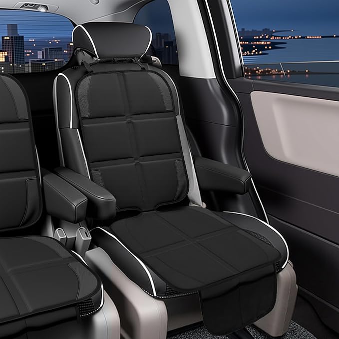 Car Seat Protector, 2 Pack Baby CarSeat Protector with Mesh Pockets & Non-Slip Backing 600D Durable Seat Cover Under Baby Child Car Seat, (Black, Standard)