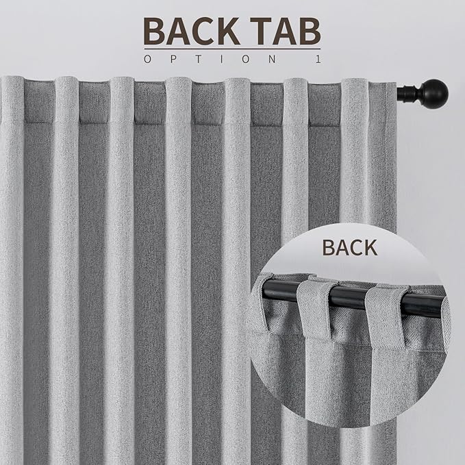 Joydeco Faux Linen Blackout Curtains for Bedroom,Light Grey Blackout Curtains 108 inches long,100% Blackout Solid Thermal Insulated Window Drapes Luxury Decor for Living Room(W52xL108 Inch,Light Grey)
