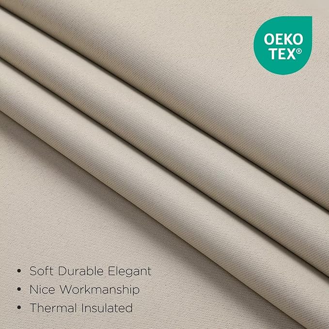 Joydeco Blackout Curtains 96 Inches Long, Thermal Insulated Black Out Curtains 2 Panels Set for Bedroom, Room Darkening Drapes for Living Room Window (W37 x L96 Inch, Light Beige)