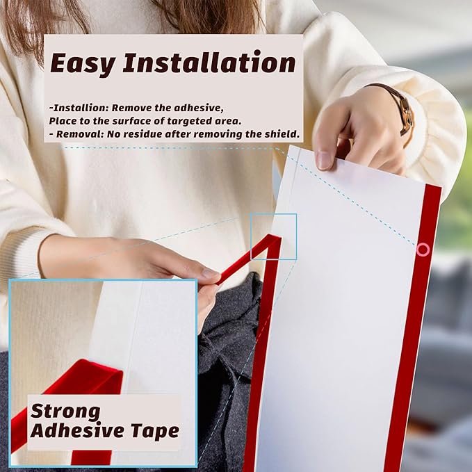 • 【Easy Installation - Step 1】Target the cover area on the door and frame > Clean and dry > Close the door for easy installation > Adhesive strips are on the left and right edges of the shield > Remove the adhesive liners a bit of either the edge on the shield.