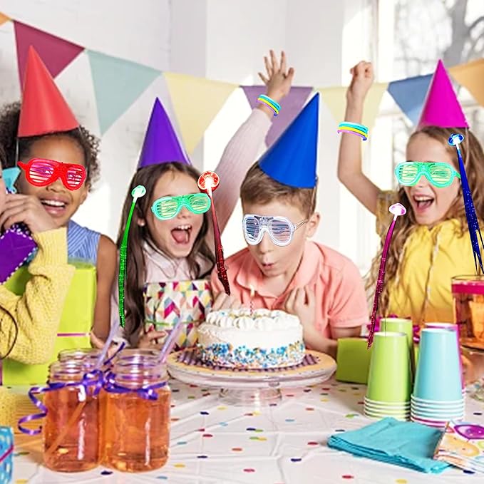 • 💯Perfect For Various Occasions:These neon party suppiles is perfect for various occasions, including birthdays, weddings, Valentine's Day parties, concerts, camping, carnivals, raves, sports events, New Year's, performances, theme parks, and as gift bag or sock fillers for both adults and kids.