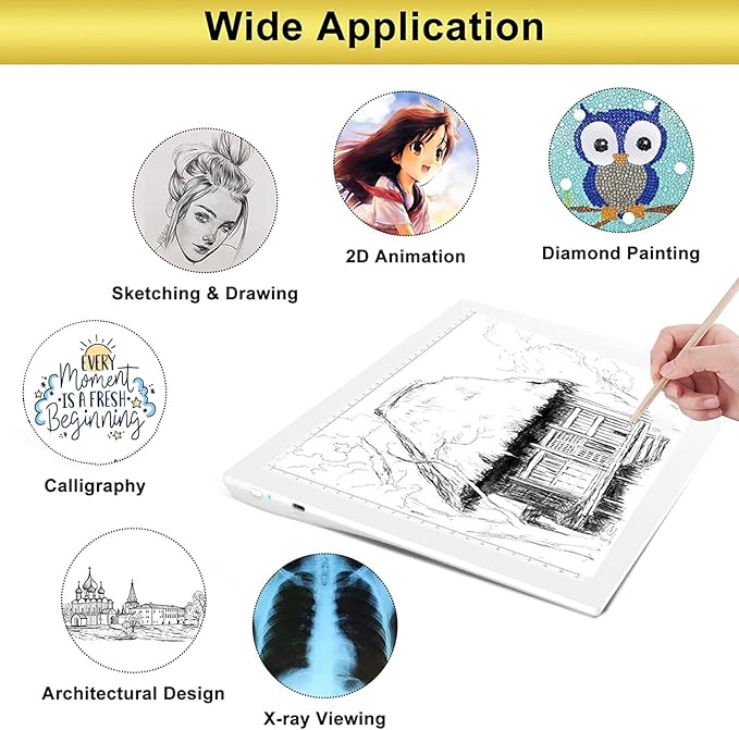• 【WIDE APPLICATION】 Ideal for diamond painting, stenciling, 2D animation, calligraphy, embrossing, scrapbooking, tattoo transferring, sketching & drawing, streaming, sewing projects, stained glass, quilting etc. A perfect tool for anyone who needs to do tracing work, or for your kid if you want to develop his talent of drawing and also the amazing gift for Children's Day, Christmas, birthdays or any other holidays.