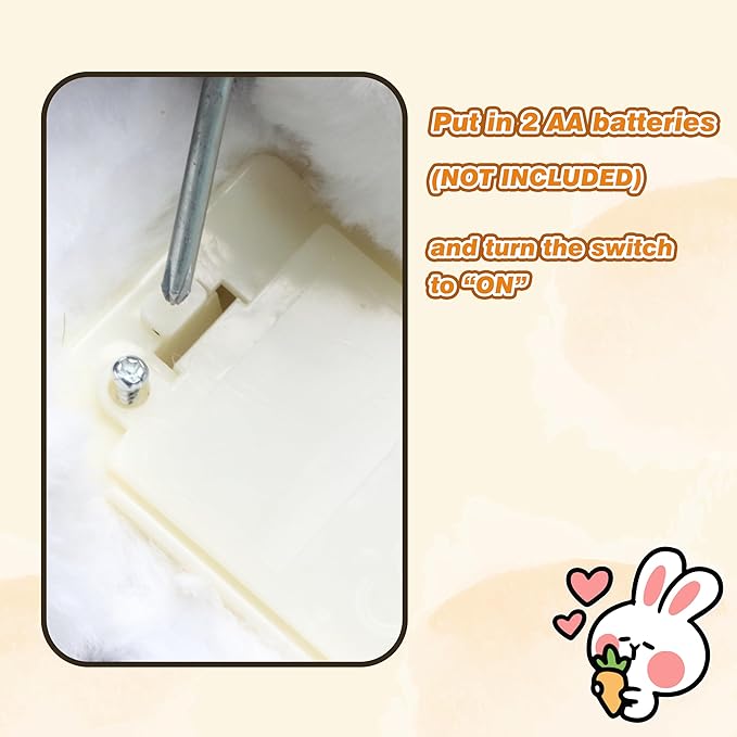• NOTICE: Remember to close battery cover with a screwdriver before when play with the rabbit toy. Kids should use it under adults’ supervision for safety reason. Keep it away from water and fire and remove the batteries if you will not use it for a long time