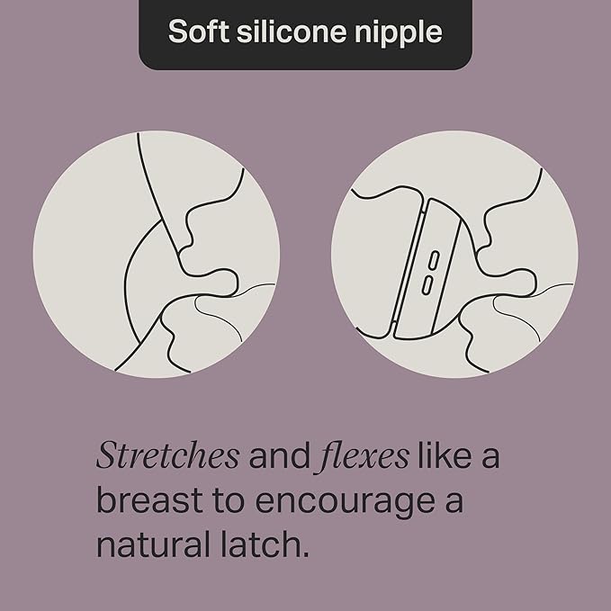 • Pace feeding: The soft silicone nipple flexes and stretches like a breast and allows your baby to feed comfortably at their own pace.