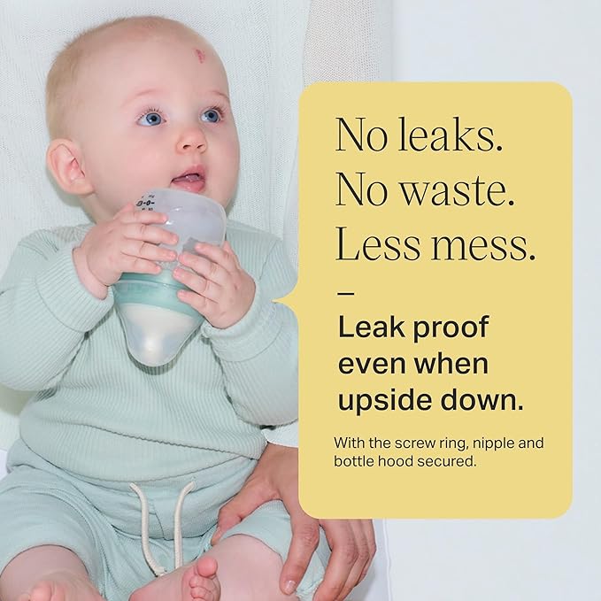 • 100% leakproof: When the screw ring, nipple and cap are all secured, your baby bottle is completely mess-free and leakproof, even if it’s turned upside down.