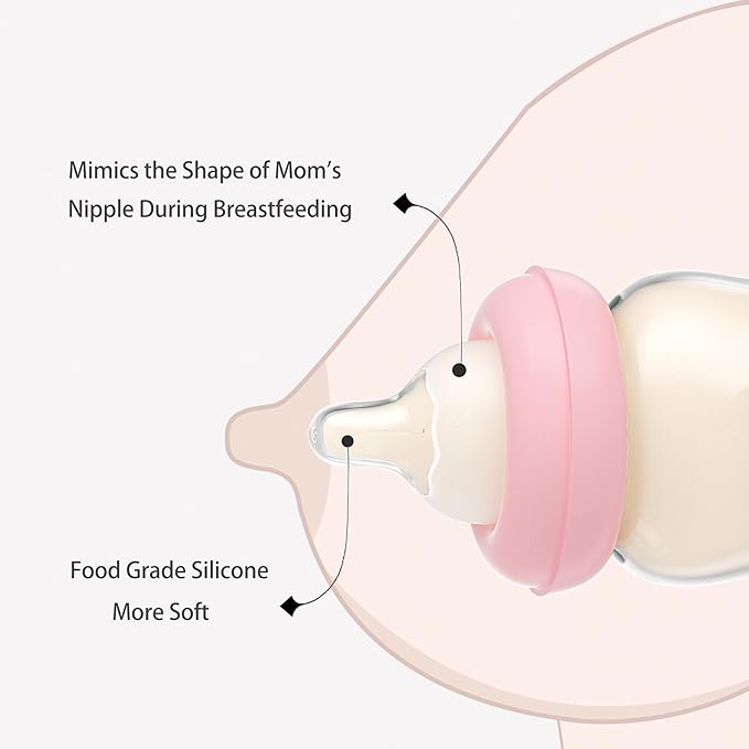 • Glass natural baby bottles with natural response nipples can control the speed of milk according to the baby suction, just like the natural sensation of breastfeeding.