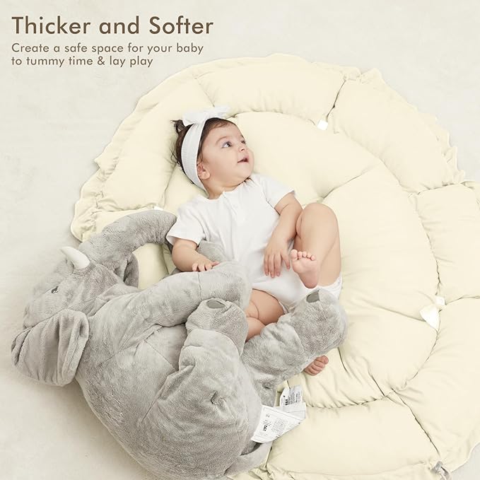 • THICKER & SOFTER: The reversible play mat crafted from premium plush material, offers a fantastic amount of cushion. Its neutral color scheme blends in with your home’s aesthetic so you can keep it out even after playtime is over.