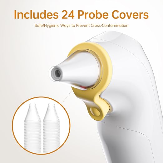 Ear Thermometer, Highly Accurate Ear Thermometer for Kids, Adults and Babies, 30 Memory Recall, 1s Result and 3-Color Fever Alert, with 24 Disposable Probe Covers, Yellow