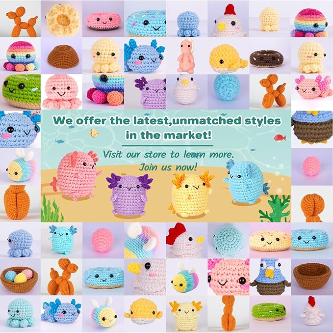 • Family Crochet Kits: Our crocheted axolotls are not only easy to make, but also incredibly adorable, symbolizing a loving and united family. Crafting them is meaningful and they are perfect for home decor as well.