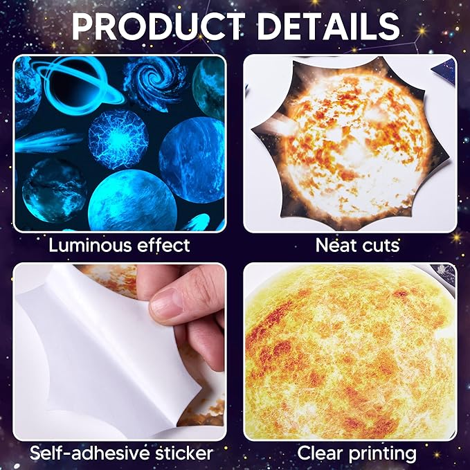 • 【Best Gift for Boys and Girls】These stickers form a mini solar system in the room. It is not only a great idea to decorate bedroom, but also a perfect astronomy enlightenment textbook. Great for any occasion: Birthday, Halloween, Thanksgiving, St. Patrick's Day, Christmas, Easter etc.