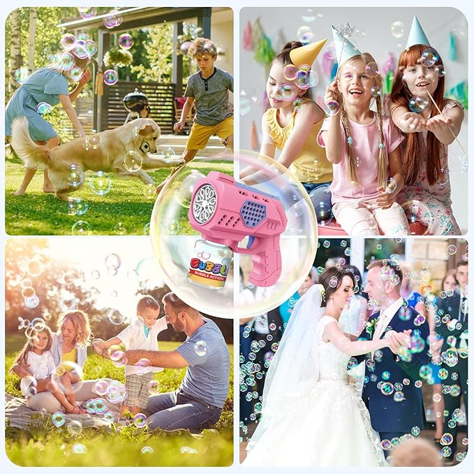 • 【The Perfect Outdoor Toy Gift】Ideal for outside gatherings, parties, weddings, birthdays,Valentines Day , Easter and more, our bubble gun creates an enchanting atmosphere that envelops everyone in its magic. It's the ultimate gift, Easter basket stuffer for kids aged 3-5, 4-8, and 8-12, sparking endless hours of imaginative play and delight.
