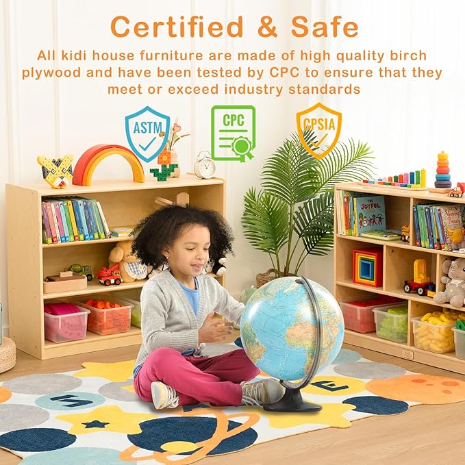• Safe for Children: The Kidi House kids bookcase carries CPC certification and complies with ASTM + CPSIA standards. It features rounded corners and an anti-tip device that prioritizes child safety, making it ideal for creating a safe environment in any space. This low bookshelf for kids is perfect for nursery, playroom, bedroom, classroom, kindergarten, living room, reading room, daycare