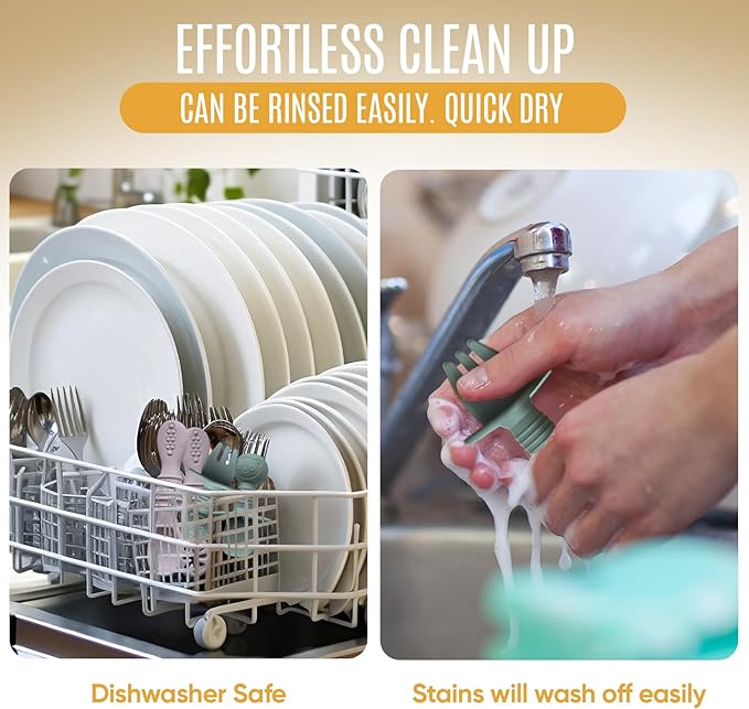 • EFFORTLESS CLEAN-UP: Made of high-quality food-grade silicone material, our baby silicone feeding set is very easy to clean up and will leave no stains. Simply, place the set in the dishwasher and they will come out clean and sanitized. These toddler spoons and forks are also lightweight and easy to hold, making it perfect for on-the-go meals.
