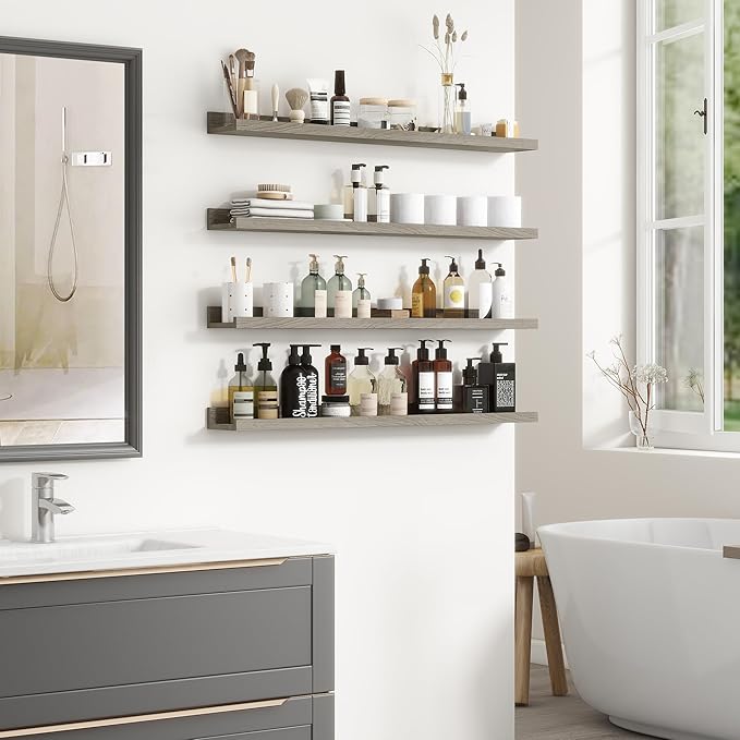 • 【Versatile Shelves Sets】If you find yourself with a plethora of pictures but are unsure how to showcase them, our picture ledge shelves—especially in large sizes—are the perfect solution! Our hanging shelves provide a secure and stylish way to store and display various types and sizes of photo frames in one convenient location, ensuring they stay safely in place without any fears of falling.