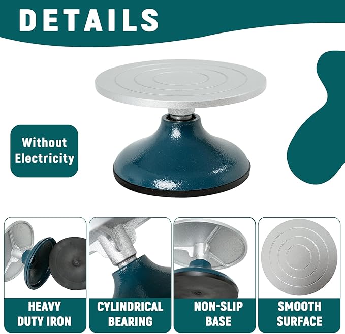 • Multi-Functional Manual Rotation: DUPDMKIN pottery wheel offers the versatility of manual rotation for detailed artwork without relying on electricity. Featuring a solid base, non-slip surface, and easy mobility, this banding wheel is perfect for painters, sculptors, and decorators.