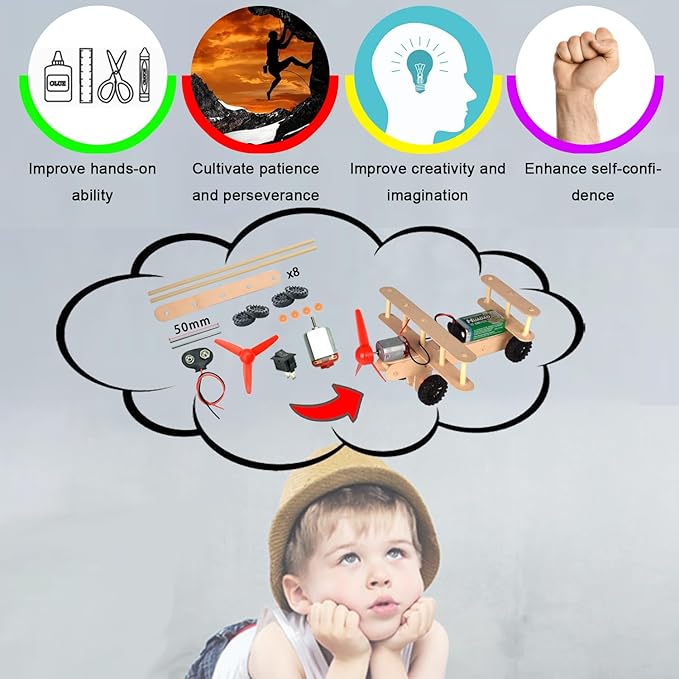 • Benefits of DIY Handicrafts: Keep your children away from electronic products, Improve hands-on ability; Cultivate patience and perseverance; Improve creativity and imagination; Enhance self-confidence; Improve the ability of your children to learn and develop their own skills. They will be very happy when they see the project they assembled move successfully.