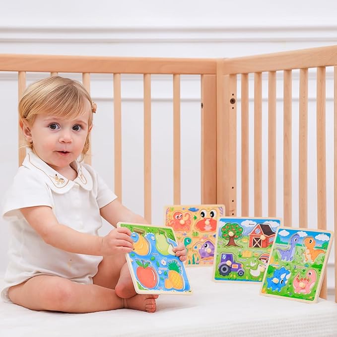 • 4 PCS TODDLER PUZZLES SET: Package comes with 1 box and 4 different patterns cute puzzles, sea animals, fruits, farm, and dinosaur.