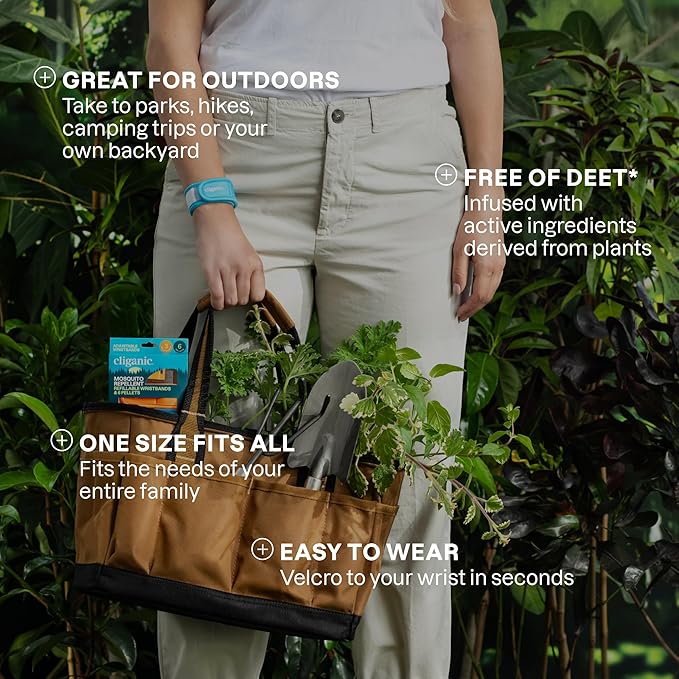 Cliganic Mosquito Repellent Pack (Wristband + 2 Refill Pellets) - Adjustable, Natural DEET-Free, Essential Oil Infused