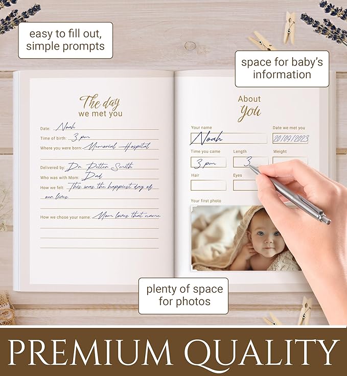 • This elegant design is not just a book; it is a cherished heirloom that tells the story of love, joy, and bond between parents and your baby. As the years pass, this precious book will become a cherished memento, evoking smiles and reminiscing about those magical moments of your baby's first year.