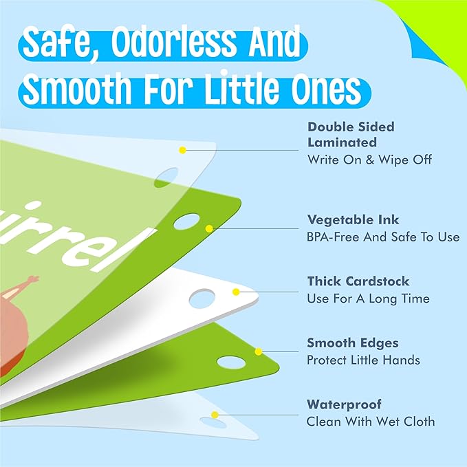• Portable and Convenient: Compact and lightweight, these flashcards are easy to carry, making them perfect for learning on the go. Whether at home, in the car, or outdoors, kids can continue their educational journey anywhere. Come with 2 rings for easy sorting and organization.