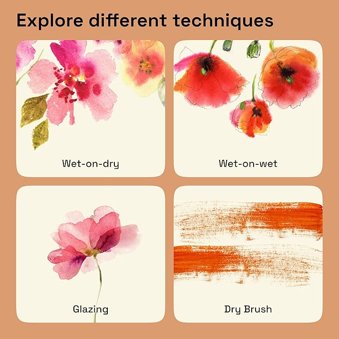 • Versatile Metallic Application Techniques: Our metallic watercolors are designed for flexible use, allowing for smooth flat washes and easy layering. The metallic paints blend seamlessly and do not leave hard edges when dry, enabling a range of professional techniques.