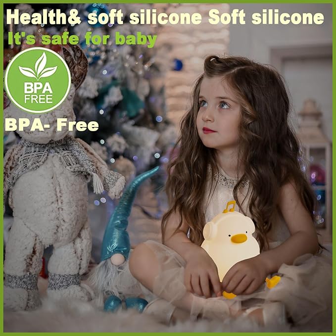 • HIGH-QUALITY SOFT SILICONE NIGHT LIGHT:Duck Night Light Is Made With Food-Grade High-Quality Silicone,It Is A Squishy Night Light With No Sharp Edges,And Bpa-Free, 100% Safe For Baby,Soft And Pinchable,That Won'T Heat Up While In Use.Safe Material And Design Suitable For Everyone