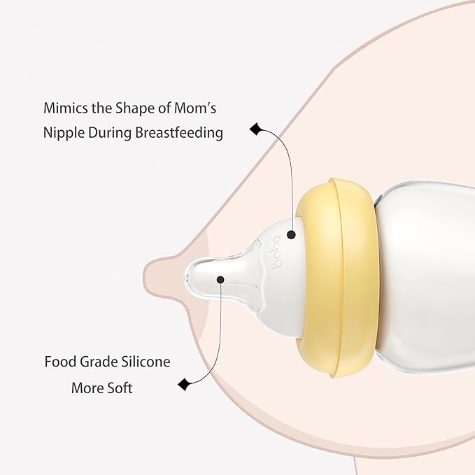 • Glass natural baby bottles with natural response nipples can control the speed of milk according to the baby suction, just like the natural sensation of breastfeeding.