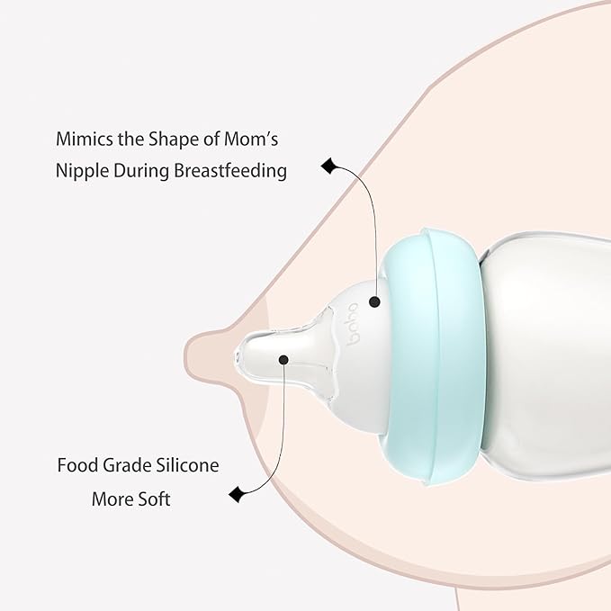 • Glass natural baby bottles with natural response nipples can control the speed of milk according to the baby suction, just like the natural sensation of breastfeeding.