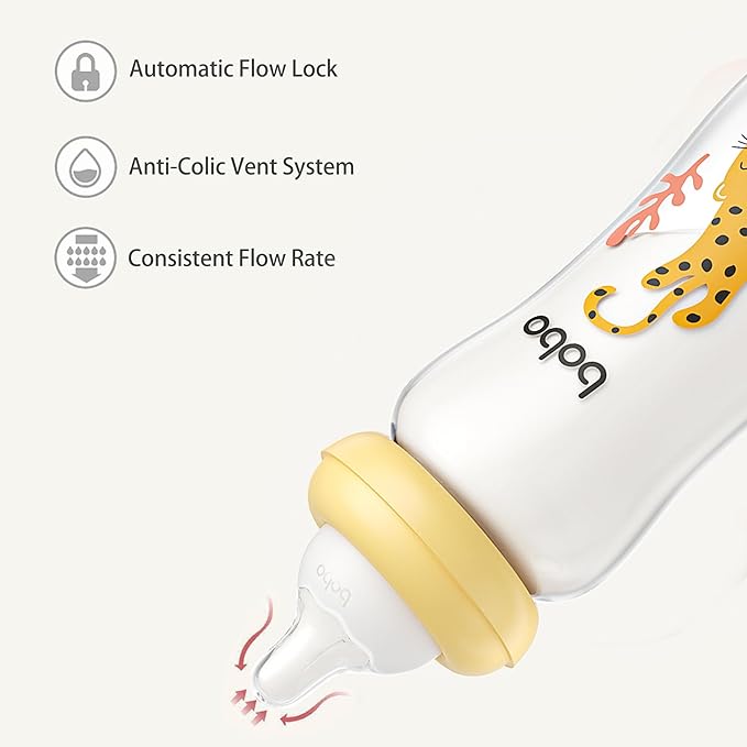 • Glass natural baby bottles with natural response nipples can control the speed of milk according to the baby suction, just like the natural sensation of breastfeeding.