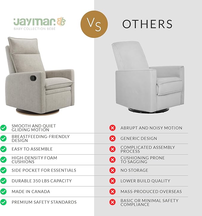 • DURABLE AND SAFE DESIGN: Handcrafted in Canada, this swivel recliner chair features a sturdy solid wood frame and anti-sag springs, ensuring long-lasting durability. Supports up to 350 lbs. and meets strict safety standards