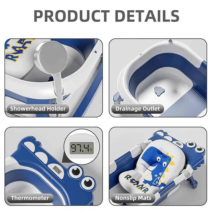 • Adorable and Functional Design: Our baby shower tub features a charming crocodile-shaped design that adds joy to bath time for your little one. Its foldable design ensures convenience and safety, accompanying your baby from newborn to toddler (0-36 months) under adult supervision. Enjoy a delightful and safe bathing experience at every stage of your baby's growth.