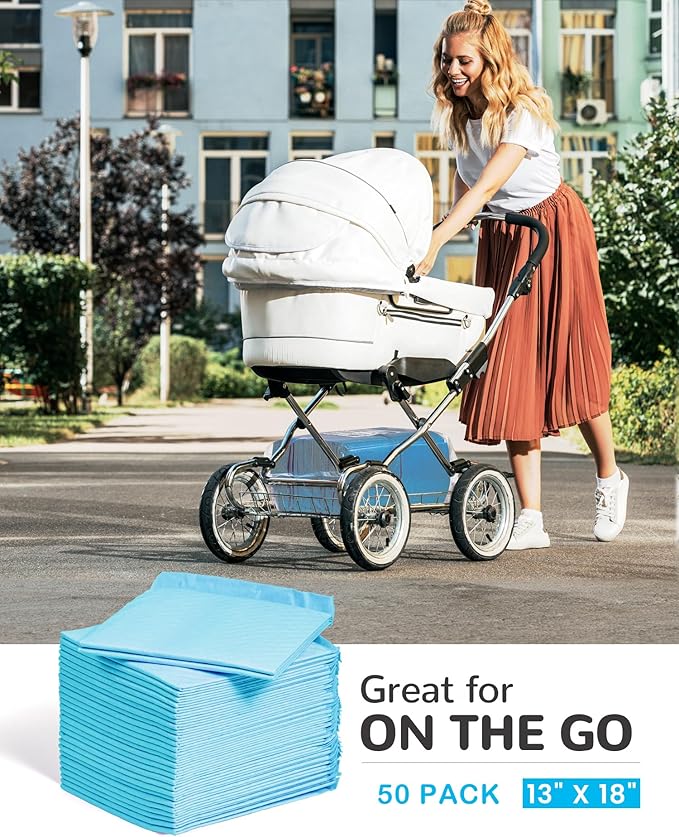 Disposable Changing Pad Pack of 50 Baby Incontinence Pad Diaper Changing Pads UnderPads Ultra Soft Super Absorbent Waterproof Mat 13 x18 in