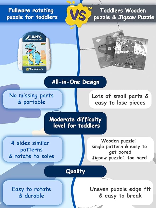 • A HANDY TOY FOR OUTINGS - Whether in the car or at a restaurant, our compact Rotating Puzzles can be carried along and keep children quiet and occupied. Moreover, there is no risk of missing pieces after playing with this all-in-one design puzzle!